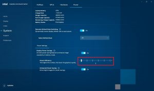 You can also turn off all of the power efficiency settings in this menu, along with the Dynamic Refresh Rate Switching or Extend Battery Life for Gaming options at the top, but I’ve found that simply reducing the aggressiveness of Intel’s image viewability slider does the job well enough.