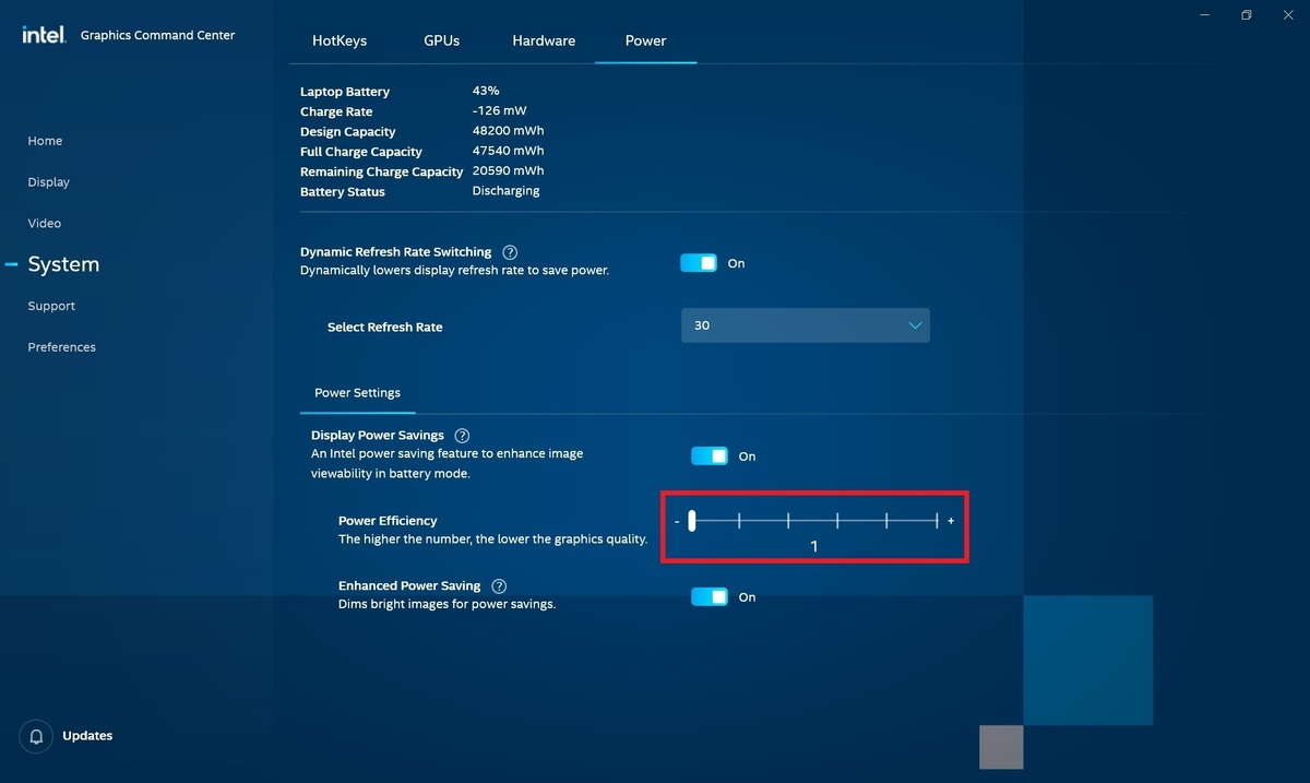 Increasing the Power Efficiency level is supposed to reduce image quality, thereby increasing battery life, but in my case the opposite was true. While your mileage may vary by laptop and use case, it’s safe to say that Intel’s power efficiency software doesn’t meaningfully improve battery life. It may even be counter-productive.