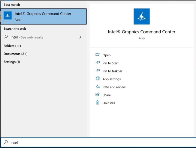 To launch the Intel Graphics Command Center app in Windows 10, just click the Start button and type Intel, which should bring up Graphics Command Center as the first option. Alternatively, you can find it by scrolling down to the ‘I’ section in your alphabetized app list.