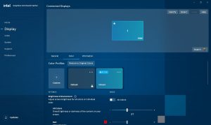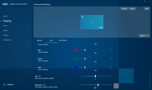 As long as you’re checking out the Intel Graphics Command Center app, take a minute to visit the Display tab (or click the computer monitor icon when the app is running in a small window). From here, click the Color tab, and you’ll see a menu for adjusting your display’s brightness, contrast, hue, and saturation.