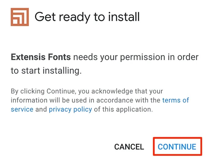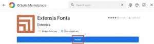 - You’ll now see a blue button that says Install. Click it to install the Extensis Fonts add-on in your Google Docs account.