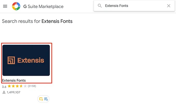 - You’ll see G Suite Marketplace offering various add-ons to use with Google Docs. Put your cursor in the search field, type Extensis Fonts, and hit Enter.