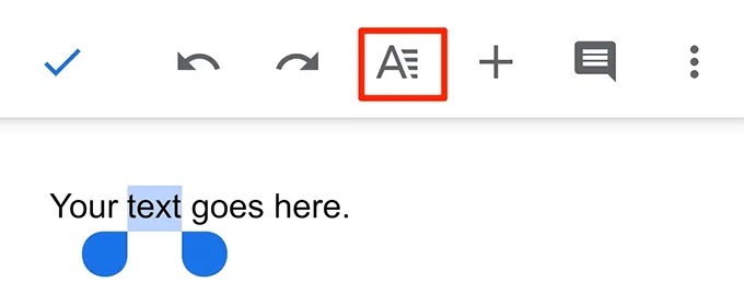- Tap and hold the text you want to change the font for. Then tap the A icon at the top to open the formatting menu.