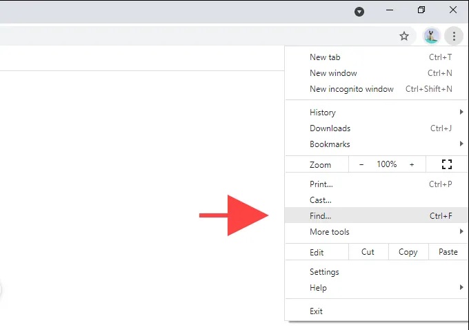 In Chrome, for example, select the More icon (three dots) to the top-left of the browser window and pick Find. In some browsers, you should find it named as Find in Page, Find on Page, and so on.
